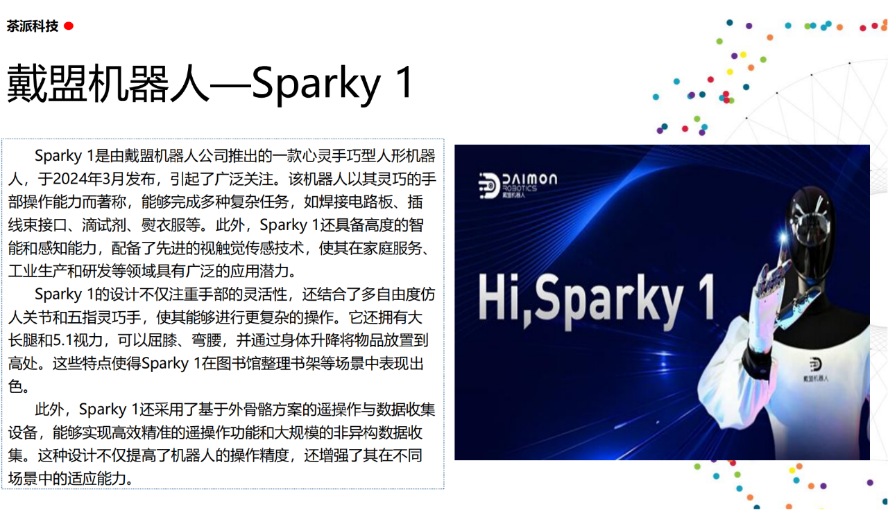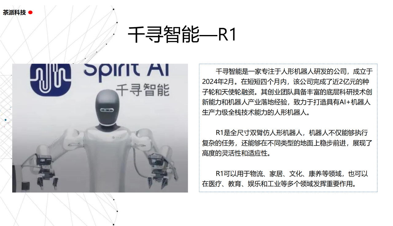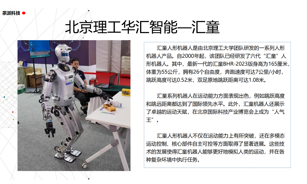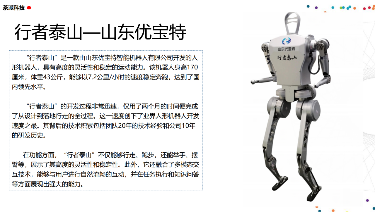 從實驗室到生產線,從概念設想到產品落地,中國人形機器人領域迎來了前所未有的井噴式發展。一款款設計精巧、功能強大的人形機器人如雨后春筍般涌現,它們或靈巧如舞者,或力大無窮,更不乏擁有情感交互能力的“智慧伴侶”。這不僅是對技術極限的一次次挑戰,更是對“中國制造”向“中國智造”跨越的生動詮釋。??在這一波人形機器人浪潮中,無數初創團隊猶如璀璨星辰,他們懷揣夢想,勇于探索未知。每一個深夜的燈火,每一次算法的迭代,都是對未知世界的勇敢叩問。正是這些充滿激情與創造力的團隊,為人形機器人產業注入了源源不斷的活力與希望。??作為深耕機器人應用場景研究的先行者,武漢茶派科技深知責任重大。在這一年里,我們積極擁抱變革,密切關注中國人形機器人產業的每一步成長。我們愿做那座橋梁,連接百家智慧,匯聚行業力量,共同推動人形機器人從技術的象牙塔走向廣闊的應用市場,讓科技之光溫暖每一個角落。??展望2025,我們滿懷期待。隨著技術的不斷迭代與應用的持續深化,人形機器人將不再只是展臺上的明星,而是真正成為我們生活的一部分。它們將穿梭于家庭、醫院、工廠、學?!愿尤诵曰?、智能化的方式服務人類,成為我們不可或缺的伙伴與朋友。??在這一年的尾聲,讓我們向所有為中國機器人產業發展默默奉獻的科研工作者致以最崇高的敬意!是你們,用智慧和汗水鋪就了通往未來的智能之路。2025,讓我們攜手并進,共同見證人形機器人從夢想走進現實,開啟一個屬于所有人的智能新時代!??加入我們,一起見證并參與這場科技革命,讓未來因你我而更加精彩!